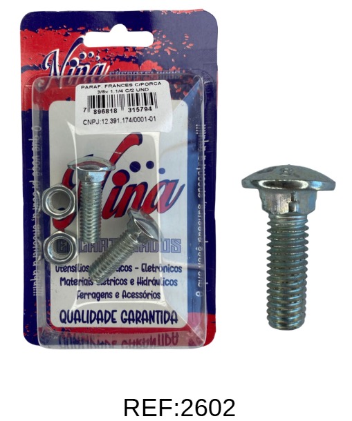 PARAFUSO FRANCES 3/8X 1. 1/4 C/PORCA C/2 UNIDADES